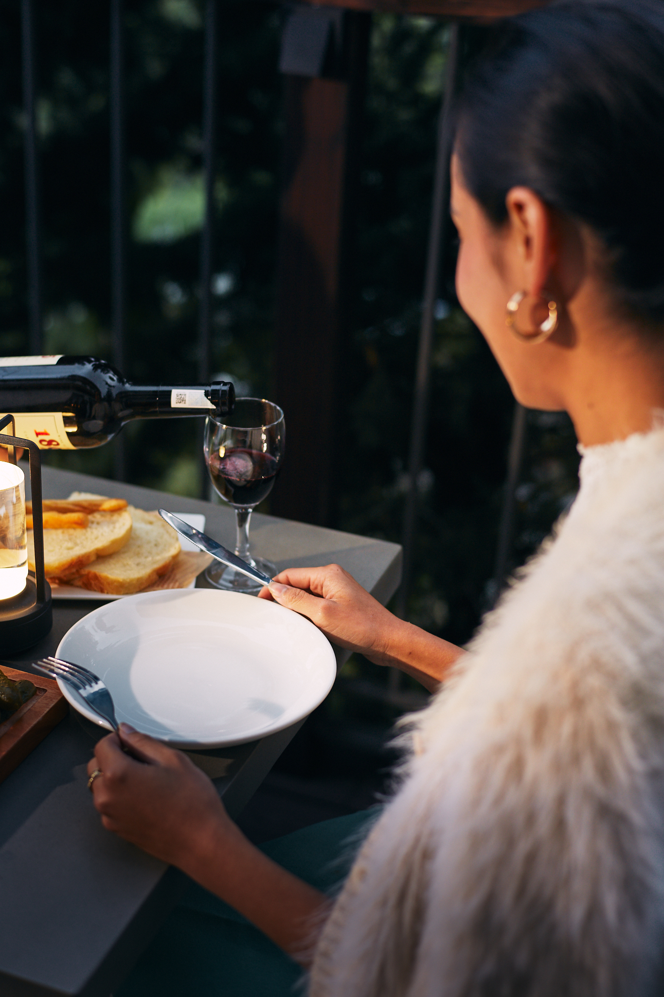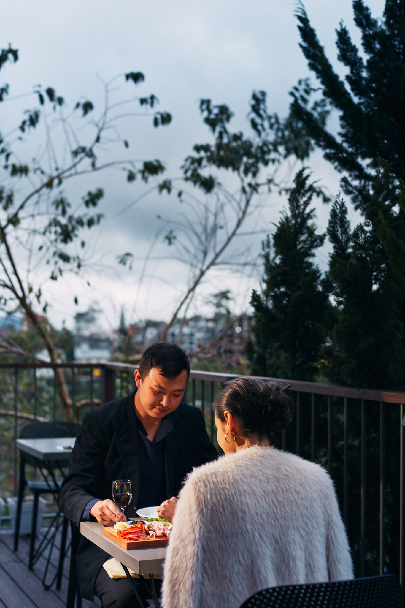 Open the door for emotional view over valley and pine rows.